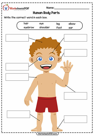 This worksheet helps students learn and recognize common parts of the body in a fun, hands-on way. Learners look at the picture and use the word bank to identify each body part. The activity supports vocabulary building and helps students connect each word to the correct place on the body.