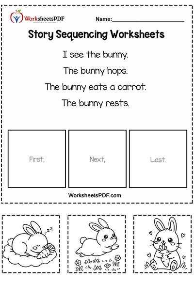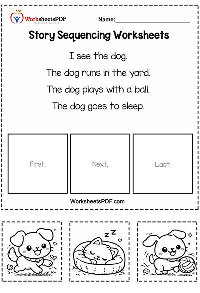 This worksheet helps children develop early reading comprehension, sequencing skills, and logical thinking. It also strengthens fine motor skills through cutting and pasting, making learning fun and interactive for young learners.